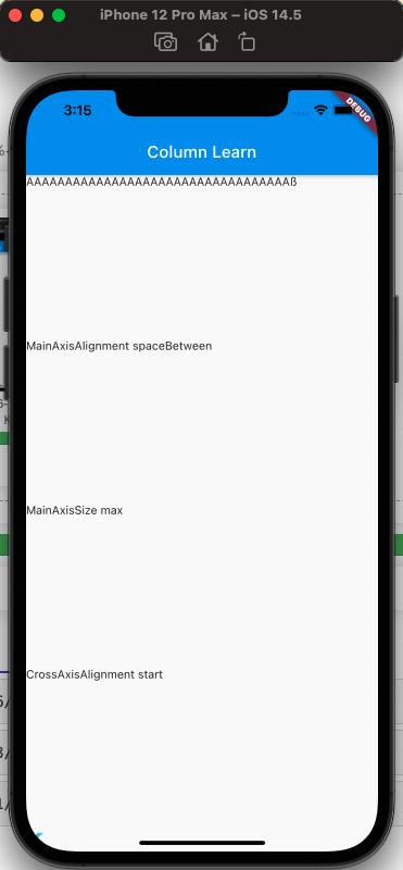 Similar to Row, when the content of child views exceeds the area of the parent view, Flutter will display a yellow warning in Debug mode. The effect is as follows: